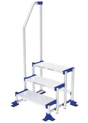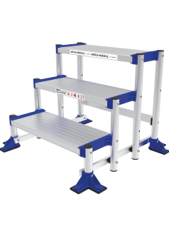 The Meca Modul range is a standardised solution adaptable to your specific needs enabling you to work, move around and access safely in an industrial environment. This stepladder is available from 3 to 5 steps and complies with the EN 14 183 standard.