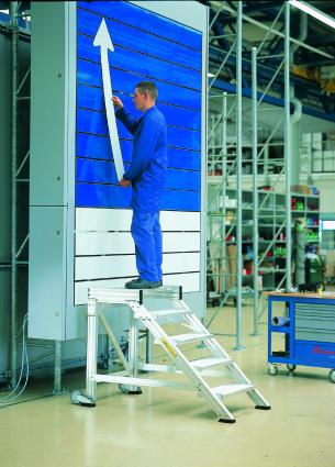 For the product in generalHeight of guardrails = 1100 mmDistance between rails = min. 500 mmHeight of toeboard = min. 100 mmDistance between posts = max. 1500 mmGuardrail units are compulsory for platformheights of over 500 mm.Standard step width = 600 mm - 800 or 1000 mm(with extension possible up to 3000 mm)Maximum load allowed on steps = 150 kgMaximum distributed load = 200 kg/m2
